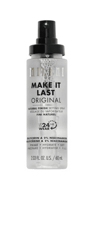 Get flawless, long-lasting makeup with Milani Make It Last Setting Spray. This versatile 3-in-1 mist acts as a primer, corrector, and setting spray, hydrating and smoothing skin while extending makeup wear up to 16 hours. Formulated with rose water and cucumber extracts, it refreshes and nourishes without leaving a sticky residue. The natural finish delivers a healthy glow, reducing powdery appearance. A travel-friendly 2.03 fl oz size makes it perfect for on-the-go touch-ups and all-day confidence.