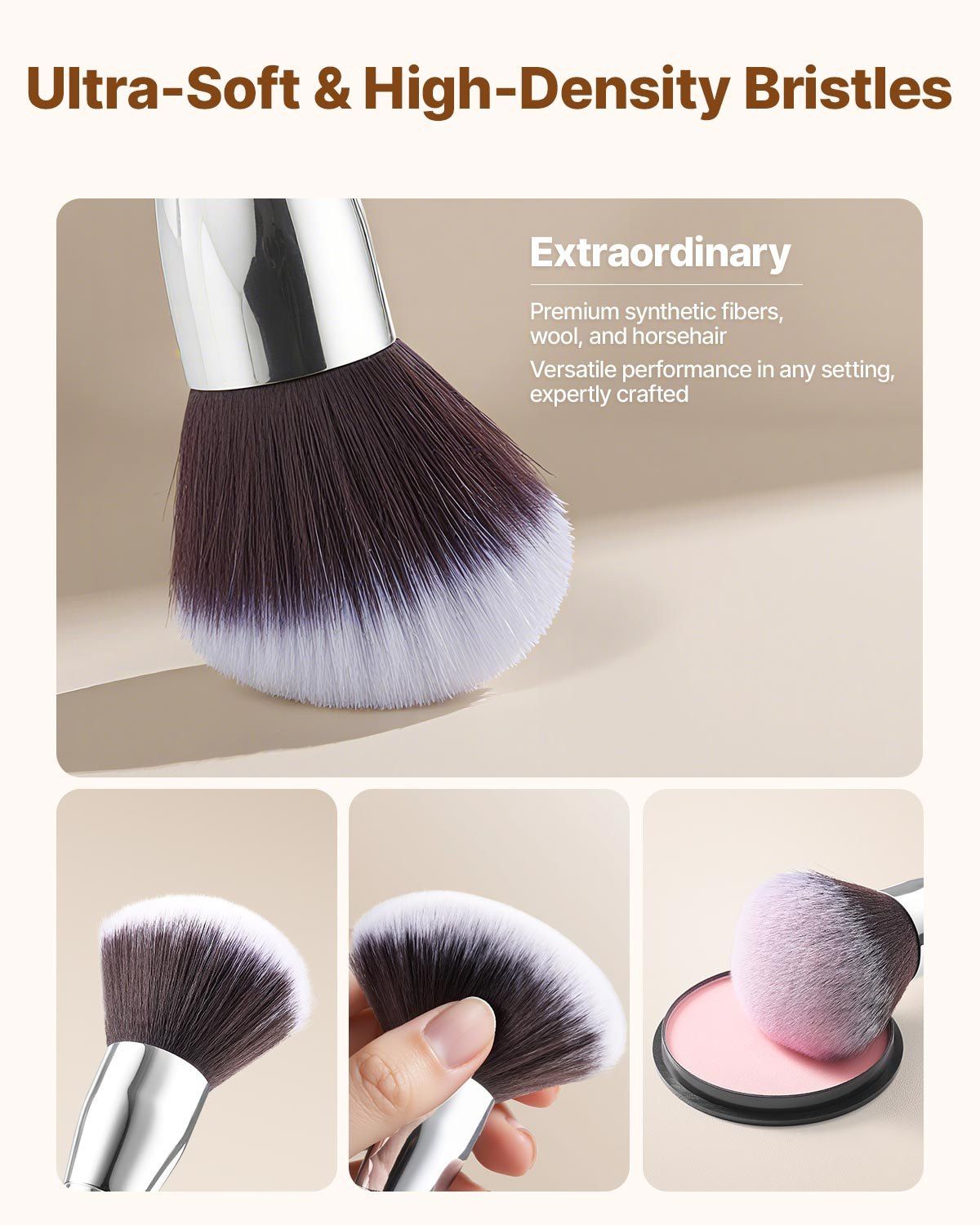 2.Ultra-Soft Bristles: This professional brush kit includes 30 brushes with vegan & cruelty-free synthetic bristles, 2 with premium wool bristles, and 2 with horsehair bristles. They feel soft on the skin, blend smoothly and evenly, offer excellent powder pickup, and deliver a flawless, natural-looking finish with stage-level color payoff